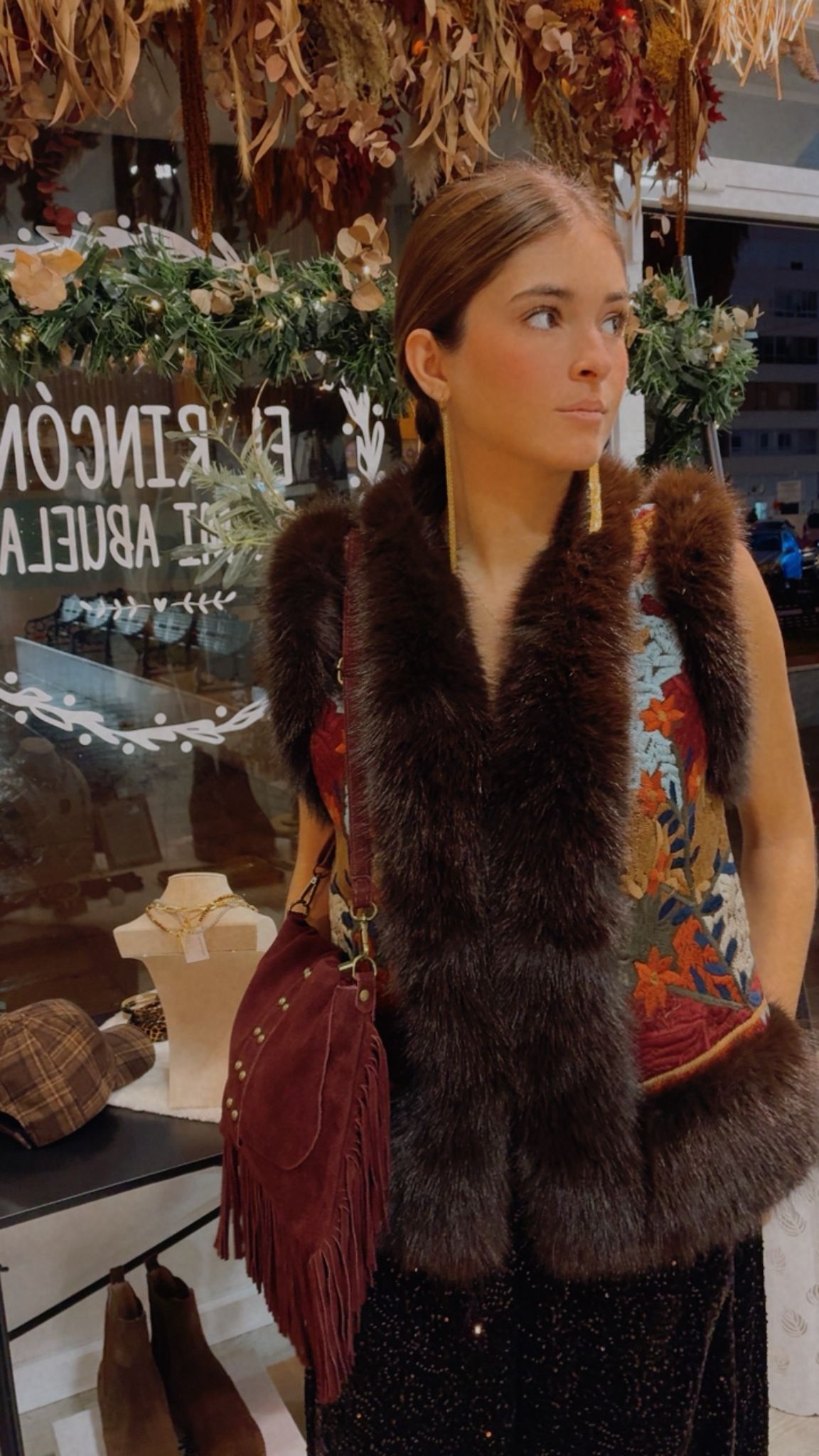 Chaleco bordado ribeteado pielChaleco bordado ribeteado piel