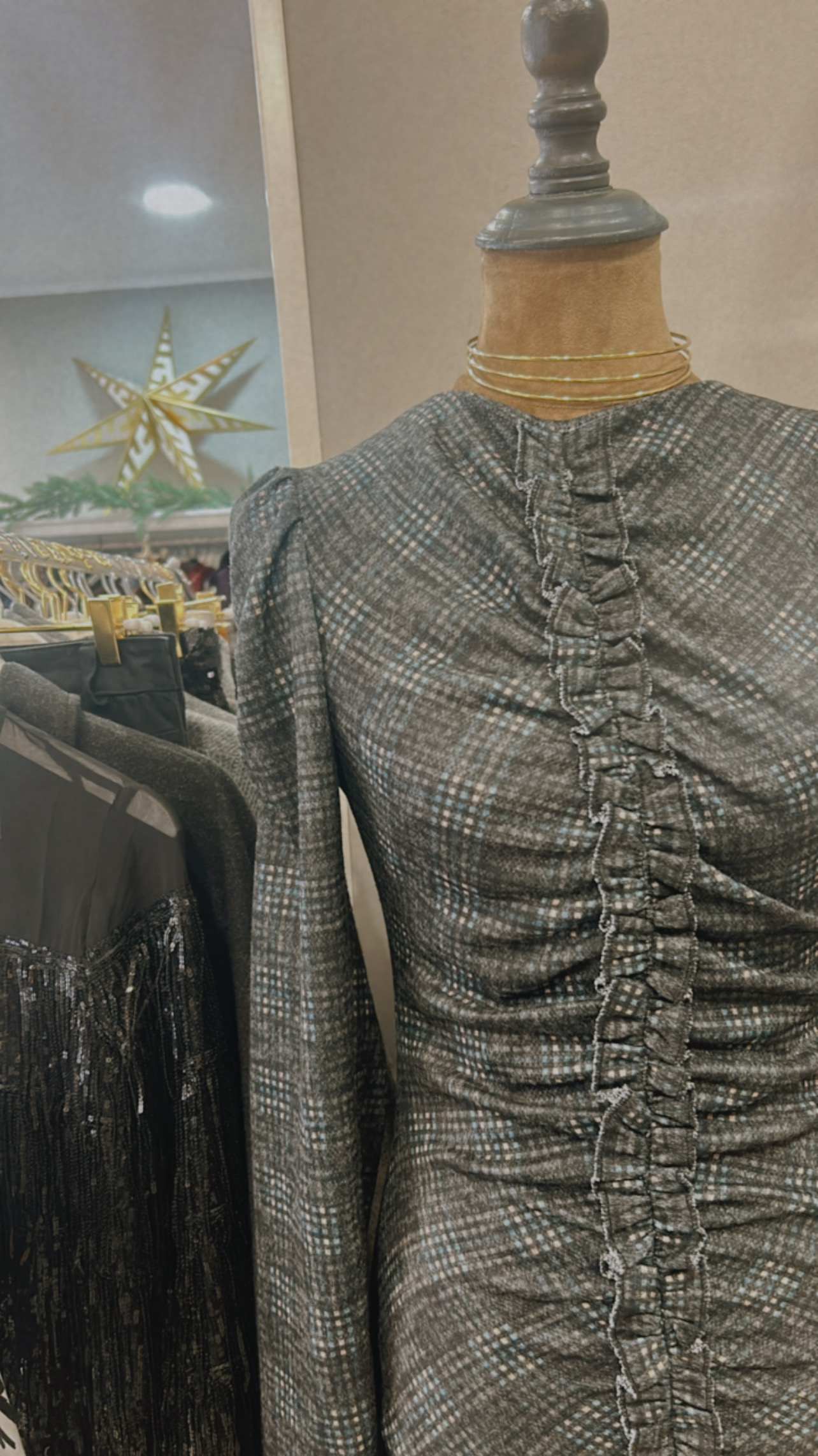 Vestido cuadros frunce gris oscuroDisponibilidad: Hay existencias