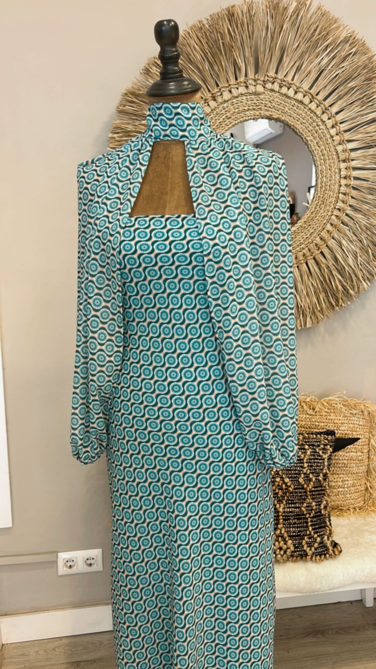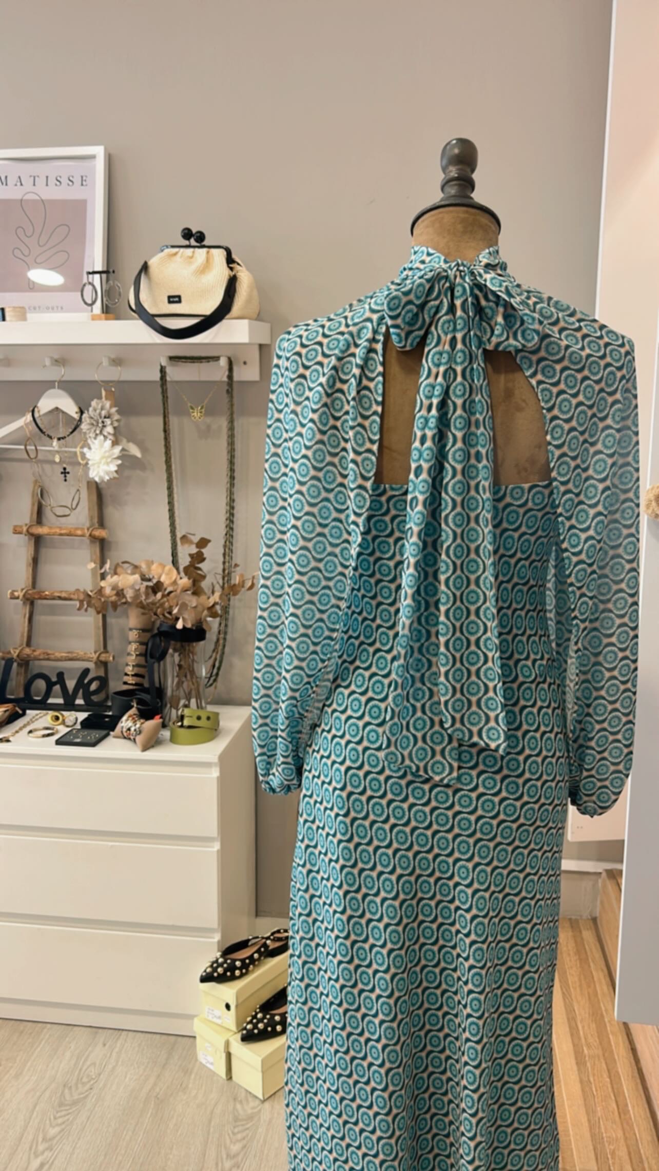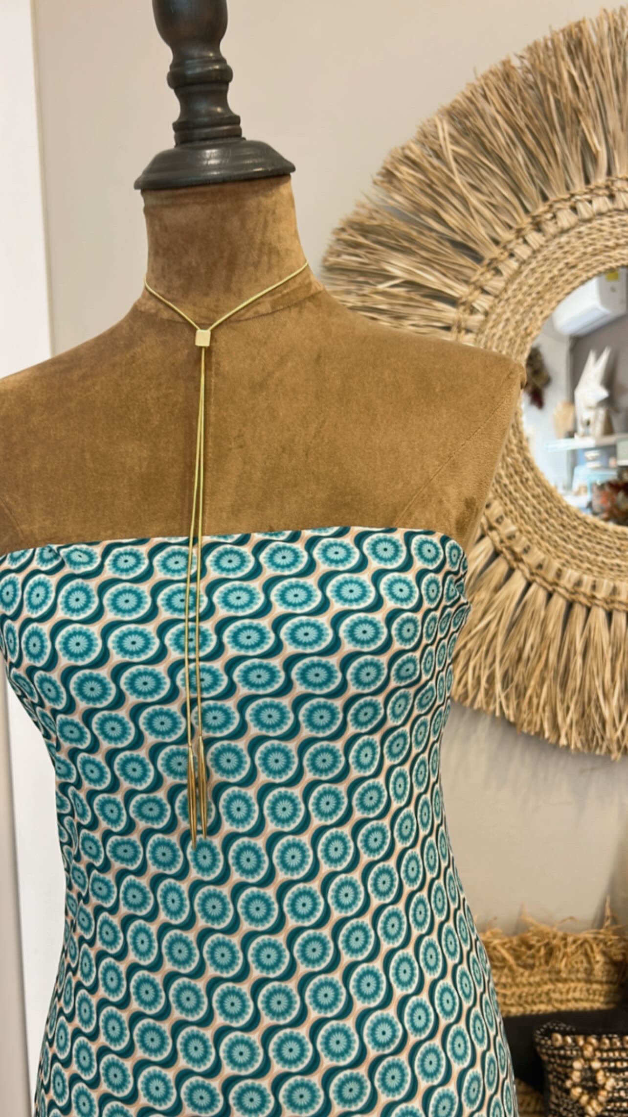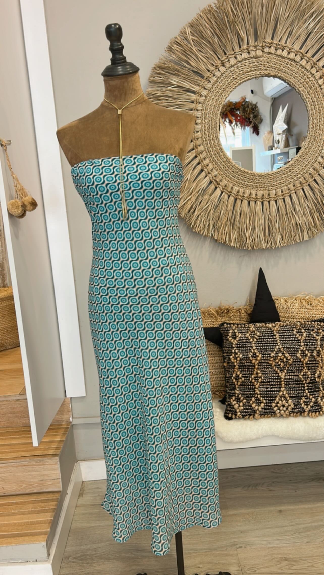 Vestido palabra de honor con capita turquesa