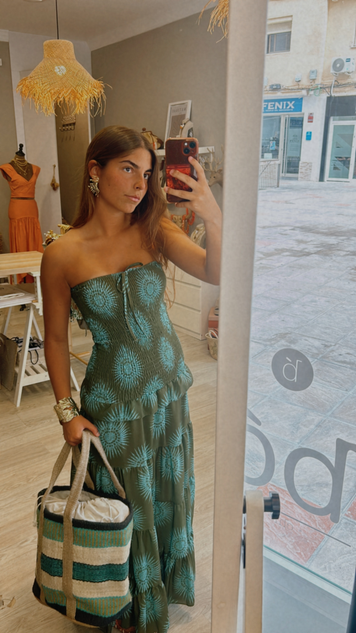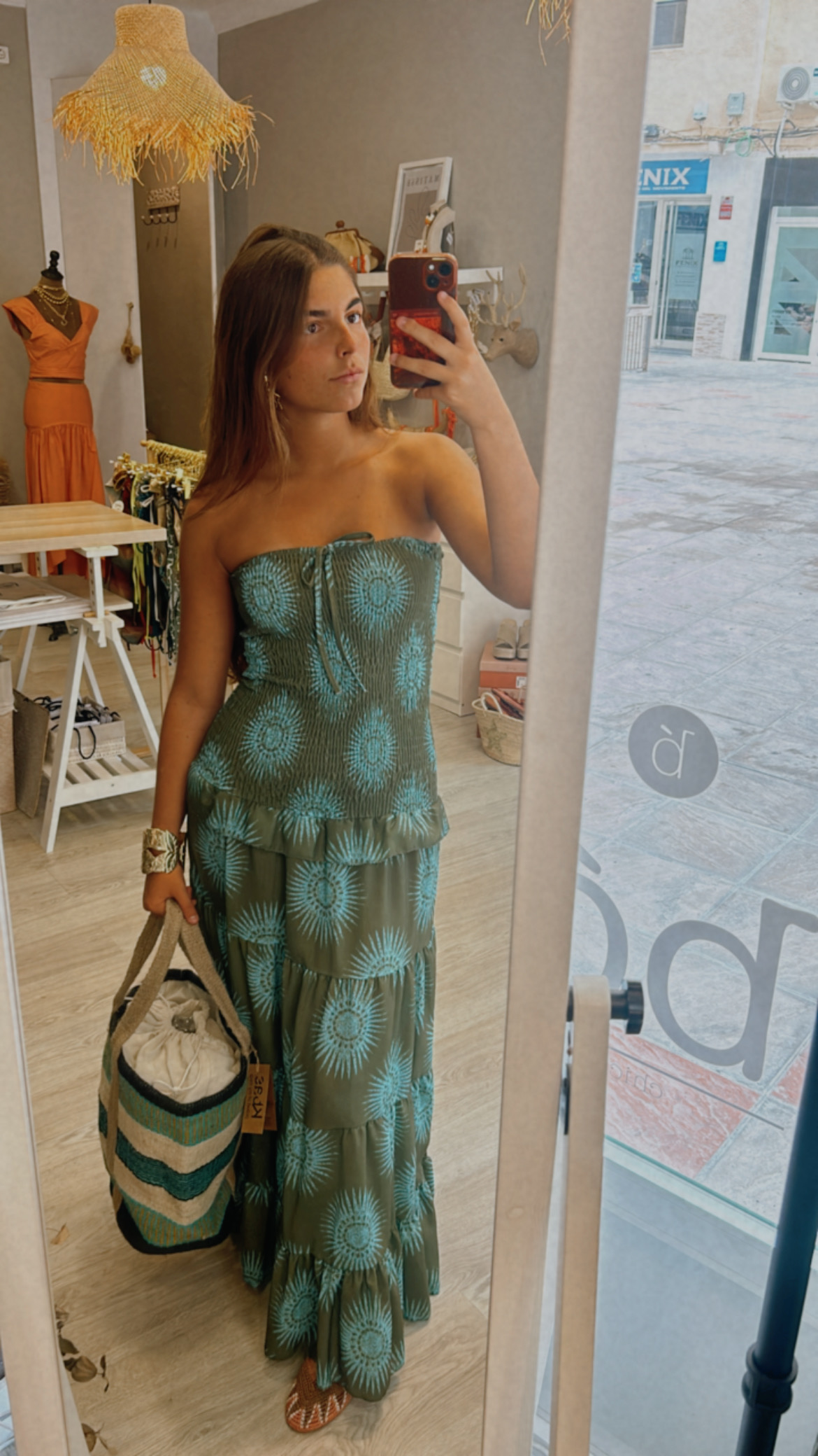 Vestido palabra de honor elástico tonos verdes