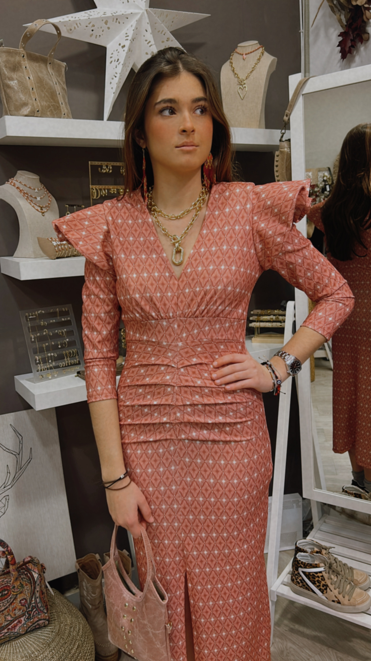 Vestido volantes estampado rosa